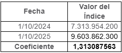 Tomando el coeficiente de actualización que ya calculamos anteriormente (1,313087563), y partiendo de la escala aplicable a los ejercicios iniciados desde el 01/01/2025 hasta el 31/12/2025: