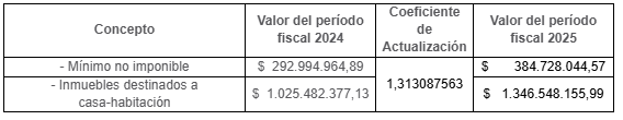 Los importes que se actualizan para el período fiscal 2025, serían los siguientes: