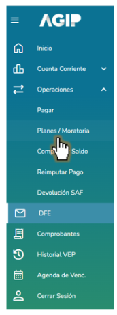 El sistema te mostrará distintas opciones, deberás seleccionar la opción “Operaciones – Planes / Moratoria”: