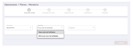 Indicá cualquiera de las dos opciones de la lista: “Nuevo plan de facilidades” o “Reformular plan de facilidades”, según lo que corresponda:
