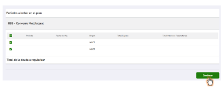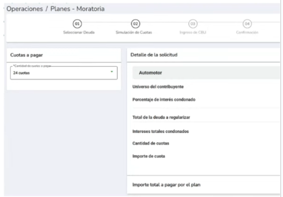 Si, por ejemplo, seleccionaste “24 cuotas”, el sistema automáticamente te mostrará el porcentaje de interés condonado y el importe de la cuota a pagar: