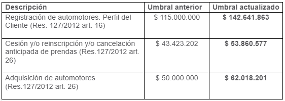 El 16 de enero comenzaron a regir los montos actualizados según el incremento del Índice de Precios del Sector Automotor (IPSA), aplicables de acuerdo a lo establecido mediante las Resoluciones UIF 127/2012, modificada por la Resolución 78/2025, y la Resolución UIF 169/2023.