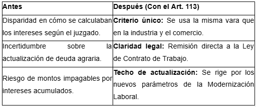 Anteriormente, el régimen agrario a veces quedaba en una zona gris o dependía de interpretaciones judiciales específicas sobre cómo actualizar las deudas salariales o indemnizaciones. Con esta modificación, se establece que se aplicarán exactamente las mismas reglas que para cualquier otro trabajador en Argentina.
