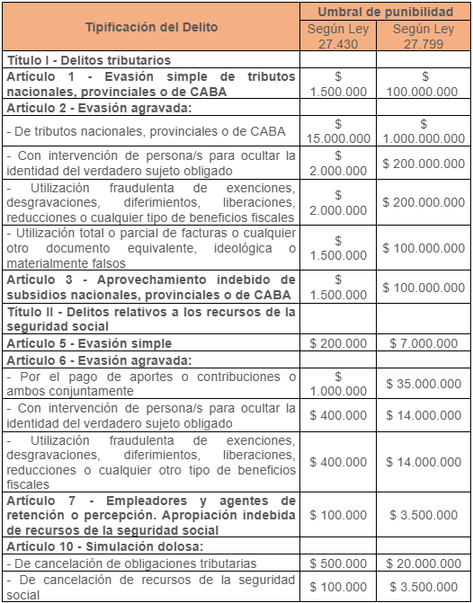 Actualización de los umbrales de punibilidad en el Régimen Penal Tributario
