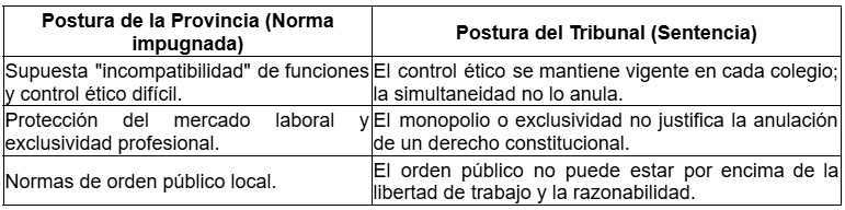 - Objeto: Acción de inconstitucionalidad contra la normativa provincial que prohíbe el ejercicio simultáneo de las profesiones de Abogado y Contador Público.